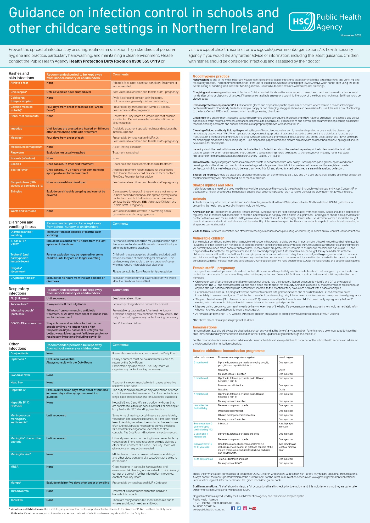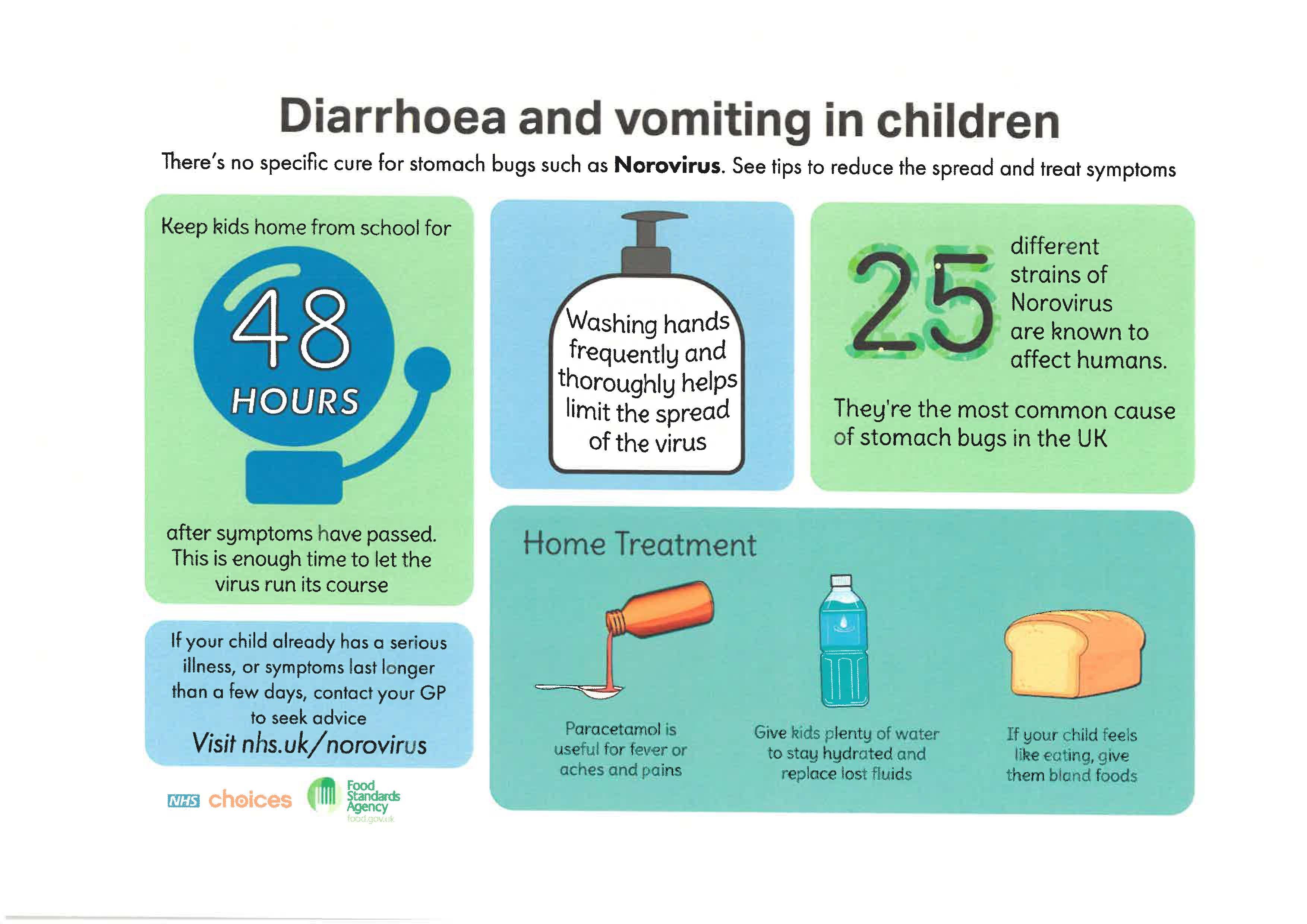 Does your child have a bug? Are you worried about a chicken pox outbreak? Or not sure about the guidelines for conjunctivitis? Our children regularly come into contact with germs and illnesses, and unfortunately they are often quick to spread. The Public Health Agency have put together the below document which provides useful guidance for parents on what to do if your child is suffering from one these common childhood illnesses. Click on the poster to see it in a larger format. We also have a guide as to how long your child should be off school for which you can view here and some more specific information for parents of children suffering from sickness and diarrhoea.
